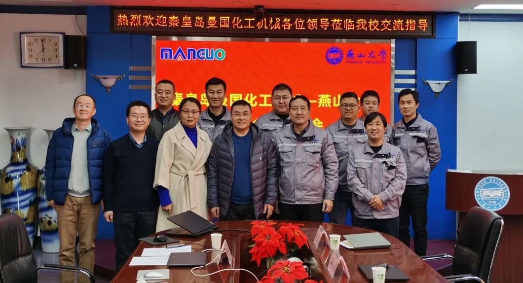 3月16日上午,秦皇島曼國化工機(jī)械有限公司(以下簡稱“曼國機(jī)械”)與燕山大學(xué)孔祥東教授團(tuán)隊(duì)在燕山大學(xué)東校區(qū)機(jī)械館301舉辦了校企合作交流會。曼國機(jī)械總經(jīng)理孫永常、常務(wù)副總翟中印、副總馬志國、副總黃斌、副總孟令儉、副總鄒博禹、總經(jīng)理助理程華偉一行7人參會,燕山大學(xué)孔祥東教授、姚靜教授、艾超教授及部分師生代表參加了會議。