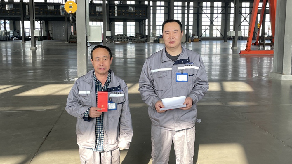 秦皇島曼國(guó)裝備科技有限公司3月31日,在曼國(guó)廠區(qū)表彰了生產(chǎn)部的2位先進(jìn)模范,并頒發(fā)了獎(jiǎng)金。